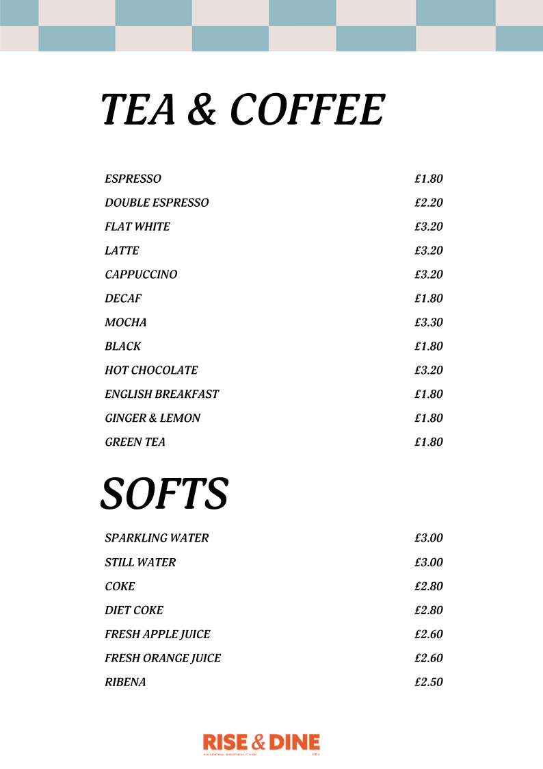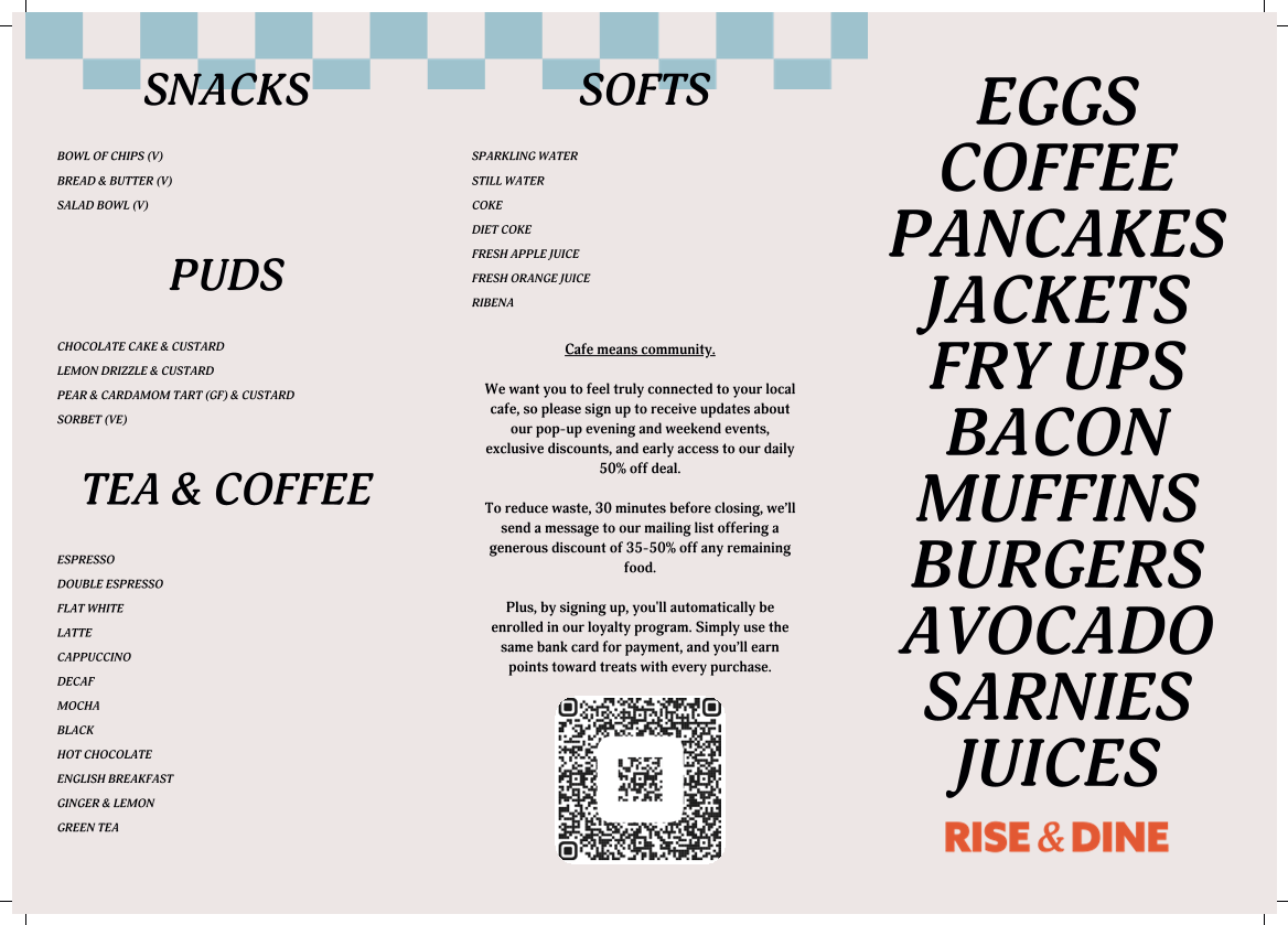 The menu is a feast for the senses, featuring an array of Rise & Dine Faves like Slow-Cooked Beef Chilli and Chicken Katsu Curry, each crafted with care. Don’t miss the Cafe Classics such as the iconic Ham, Egg, Chips, Sliced Bread and London's famous Manzes Pie N Mash.
